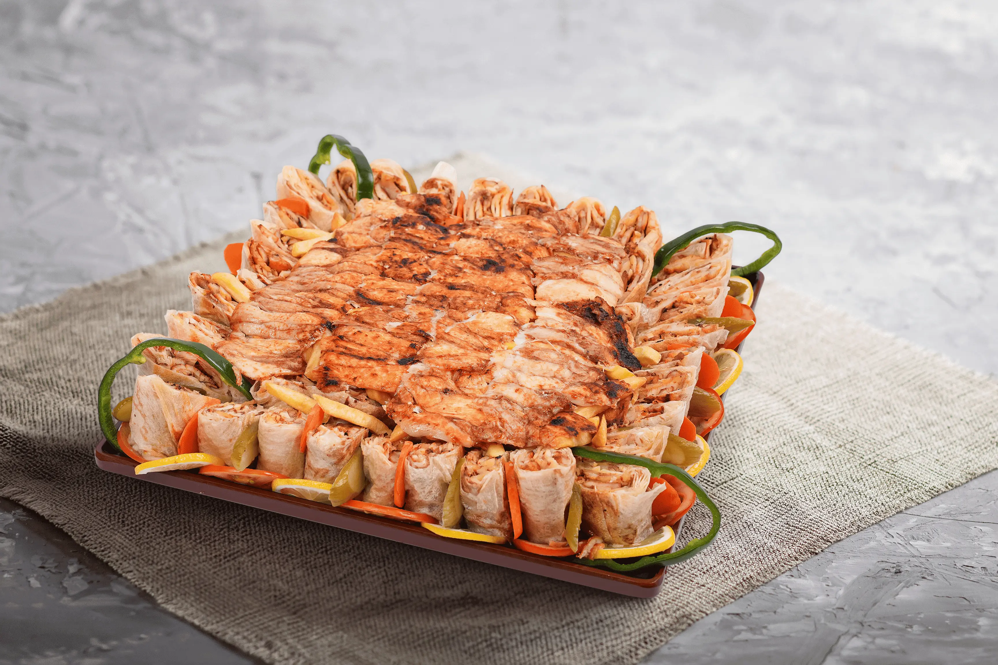تبدأ قصّتنا في مطبخٍ عائلي صغير، حيث كانت أيّامنا تدور حول رائحة الشاورما على النار، والخبز الطازج، والبهارات الدافئة. وحين قادتنا الحياة إلى هنا، حملنامعنا تلك الوصفات والذكريات. وما زال كل ساندويتش وكل طبق يُحضَّر يدويًا—بصبرٍ واهتمام—وبنفس أسرار أكل الشارع التي نشأنا عليها. فتحنا أبوابنا بهدفٍ واحد بسيط: أن يشعر كل ضيف بالترحيب، وأن يغادر شبعانًا… وأقرب قليلًا إلى طعم البيت.